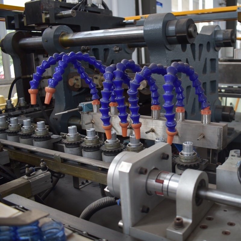 5、采用紅外線燈管加熱、穿透力強加熱均勻,合理通風冷卻系統(tǒng)能充分保證瓶坯加溫和容器口的冷卻穩(wěn)定。PLC獨立分段控溫,烘道設計合理,可翻轉,且前后上下可調。瓶坯加熱中心距小,加熱速度快,比普通加熱系統(tǒng)節(jié)能40%。瓶坯進入烘箱,瓶頸向上,由于有**的烘箱冷卻和通風系統(tǒng),瓶頸和軸不致于過度加熱瓶坯表面甚至是厚的瓶坯和高生產率的產品也能很好的被冷卻,避免被結晶化。為確保吹瓶的成品率,烘箱在衡量機器的使用性能中處于非常重要位置,本機器的烘箱結構采用當前先進的紅外輻射加熱節(jié)能技術,溫度控制采用自動反饋、閉環(huán)調節(jié)模式。