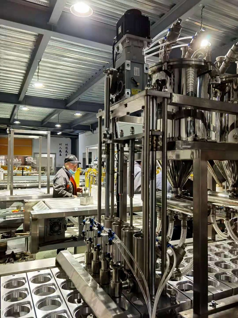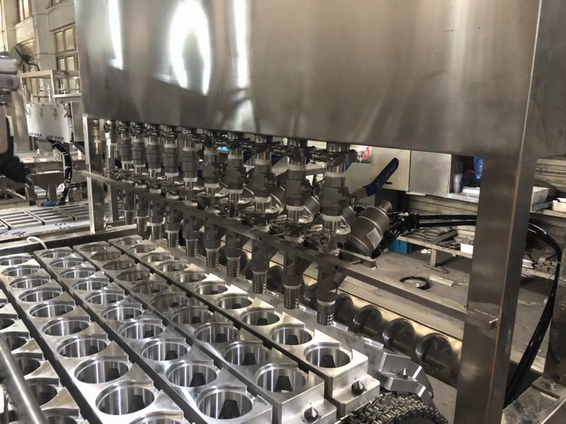 機(jī)架部分:采用碳鋼焊接而成(也可以做整機(jī)不銹鋼),外覆不銹鋼,接觸地面裝有堅(jiān)固螺栓。傳動(dòng)系統(tǒng):電機(jī)、減速機(jī)、凸輪分割器、模板、傳動(dòng)鏈條等組成。落杯系統(tǒng):由機(jī)架、滑軌、儲(chǔ)杯倉(cāng)、推杯氣缸等成。由PLC控制系統(tǒng),模板停止時(shí)發(fā)送信號(hào)同步控制動(dòng)作完成。