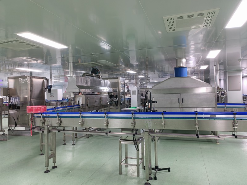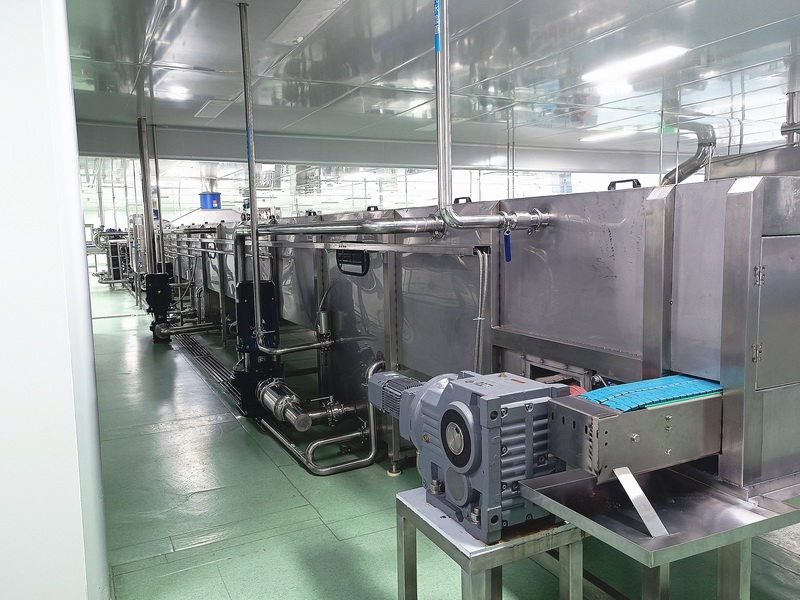 該生產(chǎn)線用于果汁飲料的生產(chǎn),可根據(jù)客戶要求及產(chǎn)量定制2000-36000瓶/每小時的生產(chǎn)線,整條生產(chǎn)線包括水果前處理系統(tǒng)、水處理系統(tǒng)、化糖調(diào)配系統(tǒng)、脫氣均質(zhì)殺菌系統(tǒng)、CIP清洗系統(tǒng)、吹瓶機(jī)系統(tǒng)、理瓶機(jī)系統(tǒng)、風(fēng)送、灌裝機(jī)、二次殺菌系統(tǒng)、套標(biāo)機(jī)、吹干機(jī)、噴碼機(jī)、膜包機(jī)、輸送、鍋爐等,自動化程度可根據(jù)客戶要求配置,提供工藝流程及車間布局設(shè)計,全程技術(shù)指導(dǎo)