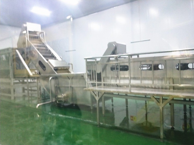 適用于芒果等熱帶水果的加工,可生產(chǎn)清汁、濁汁、濃縮果汁、芒果罐頭及果醬等產(chǎn)品。該生產(chǎn)線主要由鼓泡清洗機(jī)、提升機(jī)、檢果機(jī)、毛刷洗果、切塊機(jī)、預(yù)煮機(jī)、去皮去核打漿機(jī)、破碎機(jī)、帶式榨汁、分離機(jī)、濃縮設(shè)備、殺菌機(jī)及灌裝機(jī)等設(shè)備組成。